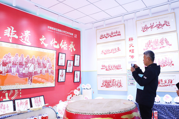 步入校园文化之旅的非遗梆鼓秧歌展示区,文化墙上的详尽介绍、表演时的精彩剪影、古朴的梆鼓秧歌道具与艺术节获奖作品交相辉映,让大家深切感受到这项山东省级非物质文化遗产不仅承载着劳动人民热爱生活、勤劳朴实的精神特质,更见证了传统文化在校园传承中的创新与新生。让到访者读懂了非遗教育背后,文化根脉的延续与少年力量的传承。非遗梆鼓秧歌成为泰和小学文化传承的又一张魅力名片。