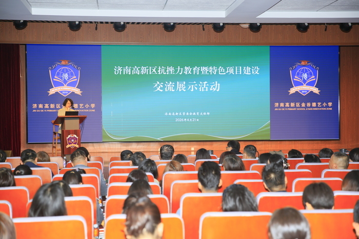 4月21日上午,济南高新区抗挫力教育暨特色项目建设交流展示活动在金谷德艺小学报告厅举行。本次活动以“韧性成长·特色赋能”为主题,旨在系统推进学生心理韧性培育与学校特色品牌打造,搭建区域教育互学互鉴、协同提升的平台。