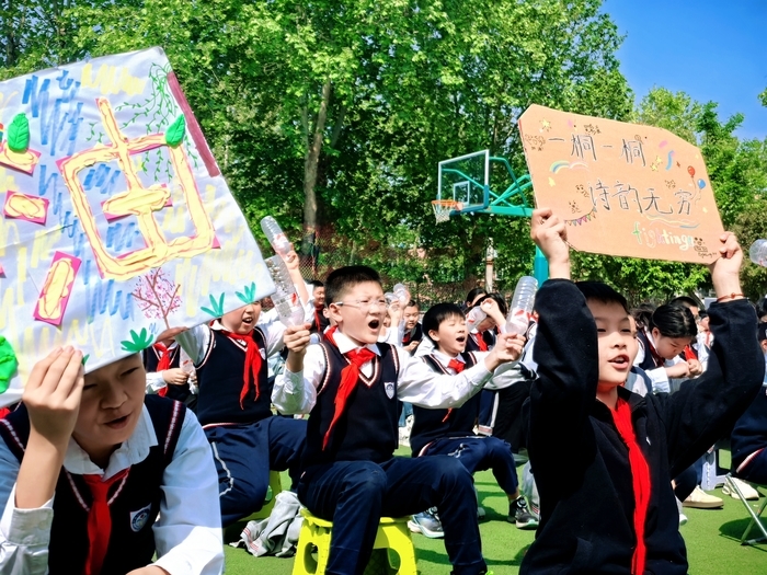 近日,济南市六里山小学以“香山叠翠入诗卷,你我同是颂春人”为主题,举办第三届赏花文化节,同步启动国际生态学校创建,并举行“健康第一・香山十大阳光研学基地”揭牌仪式。