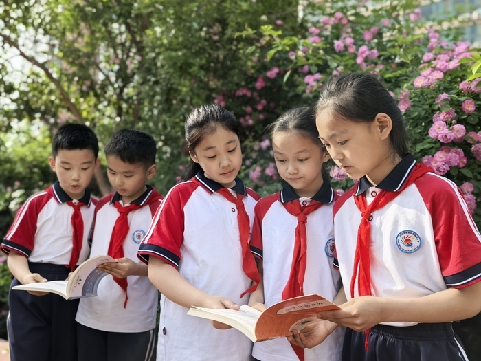 济南市槐荫区泉新学校则以“一起读书,一起见山见海”为主题,推出七天共读计划,分学段推进专题阅读周,建立导读、推进、展示三维课程体系,引导一至六年级学生完成整本书阅读。低年级开展亲子绘本诵读,三年级进行好书推荐卡创作,四年级围绕《十万个为什么》绘制思维导图,五六年级分主题设计创意书签。