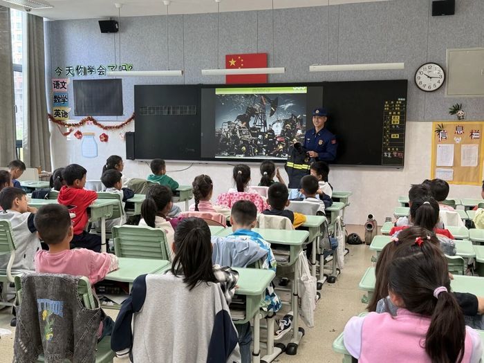 “消防是什么?消防员叔叔的衣服为什么是橙色的?着火了我们该怎么办?”带着一串串好奇的问题,海川教育集团瀚阳学校一年级(5)班的教室里,迎来了两位特殊的老师——来自济南市高新区汉峪消防救援站的指战员们,一场别开生面、干货满满的消防安全主题教育课,在孩子们亮晶晶的期待目光中正式拉开帷幕。