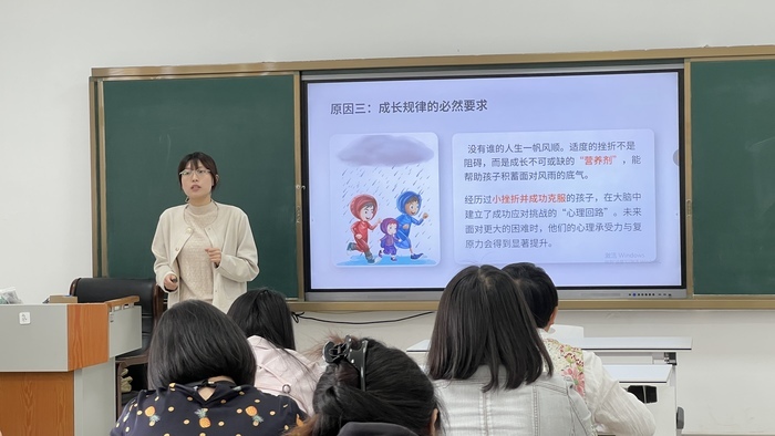 “学习难度提升、人际交往变复杂、自我意识快速发展,8-9岁是孩子小学阶段的关键转折期,也是抗挫折能力形成的黄金期。”讲座伊始,赵潇涵结合多年临床经验,直击低年级学生成长痛点。她表示,这个阶段孩子面临学习挫折、同伴矛盾、情绪困扰等难题时,常出现“我不会”“我不行”的逃避反应,这并非“娇气”,而是符合儿童心理发展规律的正常表现,科学的挫折教育至关重要。从发展心理学视角,赵潇涵深入剖析低年级孩子需强化挫折教育的核心原因。她谈到,低年级孩子逻辑思维尚未成熟,易将一次失败等同于“自己不行”,形成消极认知定式;情绪调控能力较弱,负面情绪长期积压易引发厌学、叛逆等问题;而适度经历挫折、学会应对困难,是孩子成长的必然要求,能为未来发展筑牢心理根基。同时,她提醒家长,过度保护或一味指责的教育误区,会严重摧毁孩子的心理韧性。