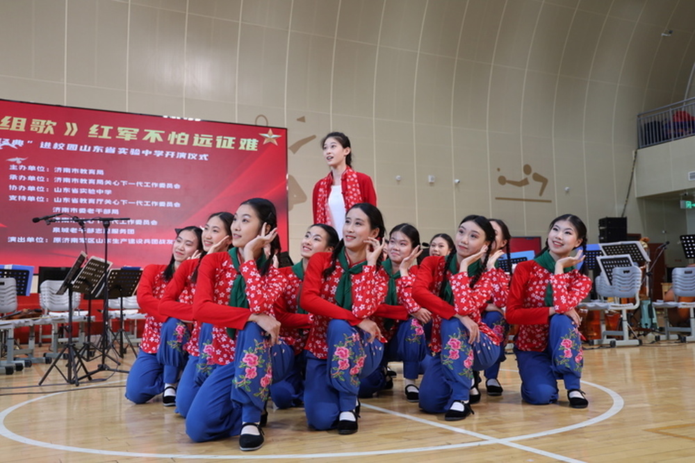 4月30日,由济南市教育局主办、济南市教育局关工委承办、山东省实验中学协办的“红色经典进校园”《长征组歌——红军不怕远征难》专场演出在山东省实验中学致毅馆举行,活动旨在传承红色基因、厚植家国情怀,扎实推进红色文化育人实践。