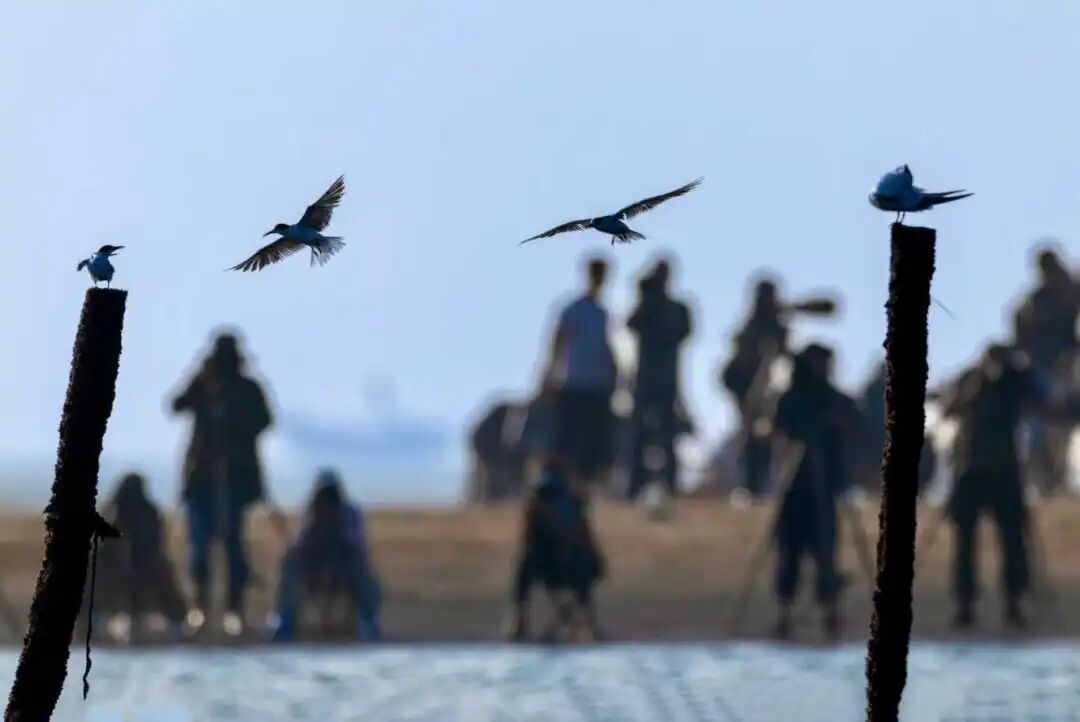 中华凤头燕鸥现身日照吸引许多游客前来观赏、摄影。图源:刘家湾赶海园,摄影臧绍喜