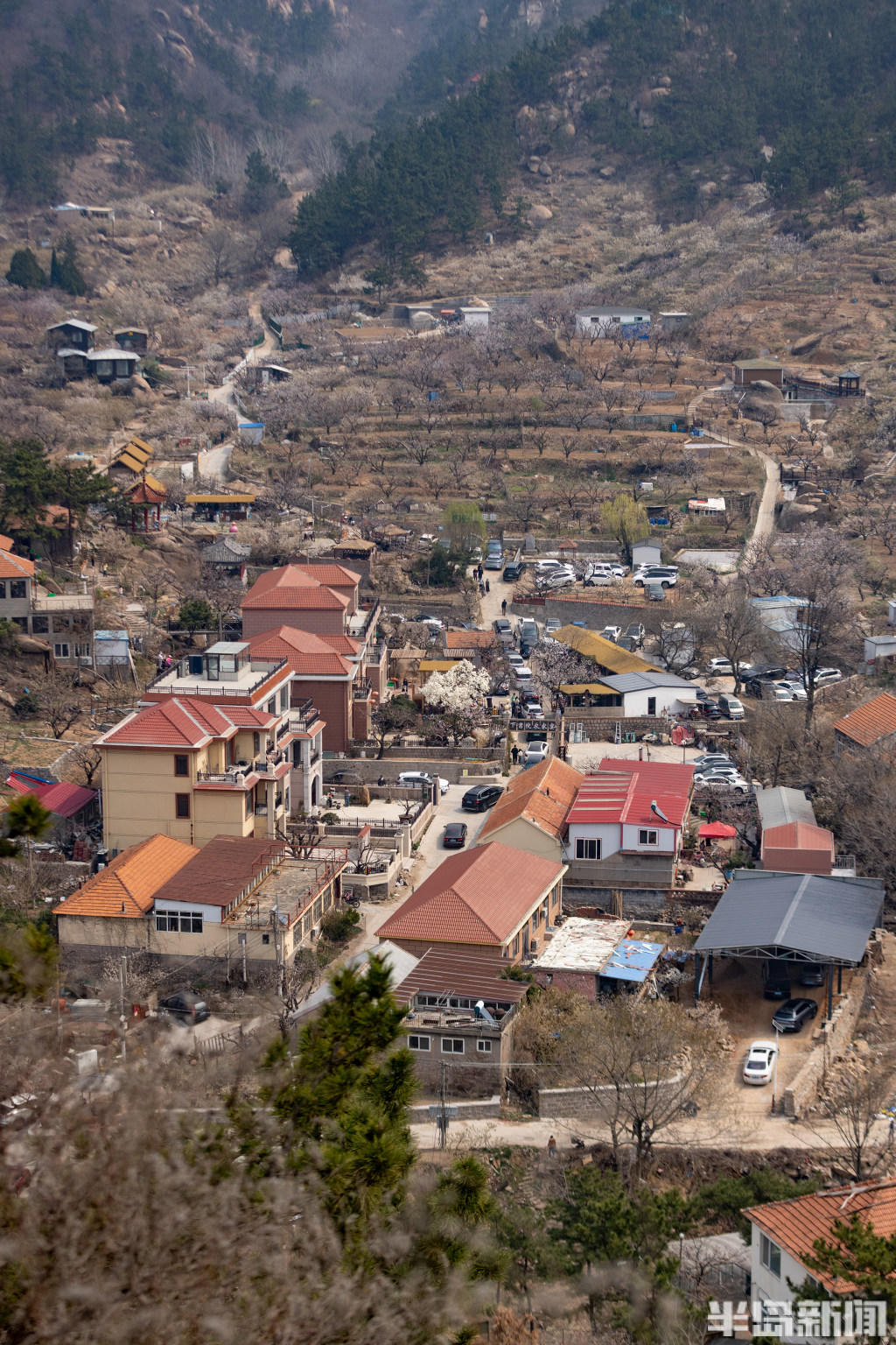 三月里的少山春风和煦、山花遍野,尽显一片生机盎然的动人景象。这里是远近闻名的红杏之乡,“少山红杏有着300多年的种植历史。”少山社区党支部书记郭衍宽介绍,明代兵部尚书黄嘉善曾在此设立书院,一代代村民在这片土地上栽种红杏,如今杏林面积达到3000多亩,逐渐发展成为乡村特色产业。“每年3月,杏花等漫山开放,少山也进入一年之中最美的季节。”郭衍宽介绍,如今越来越多的市民与游客前来踏青赏花,感受少山独特的山水之美。