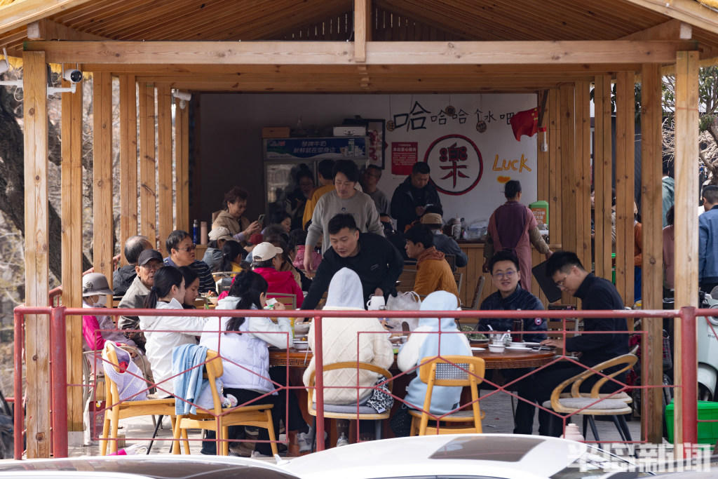 “我们的农家宴周末餐位得提前一个周预订,有顾客甚至早早提前一个月就预订。”下书院农家宴负责人车健当天在店里忙前忙后招待络绎不绝的顾客。“咱家的特色菜是砂锅炖泉水鸡、生烤羊腿、水库鱼,还有各种各样的山野菜。”车健表示,随着少山游客的增多,当地农家宴也火了起来,每年3月开始进入旺季,顾客想前来就餐体验至少要提前一周预订。店里室内室外共有近百张桌子,每个周末都会坐满,就餐时间来此的私家车更是把院前院后堵得水泄不通。