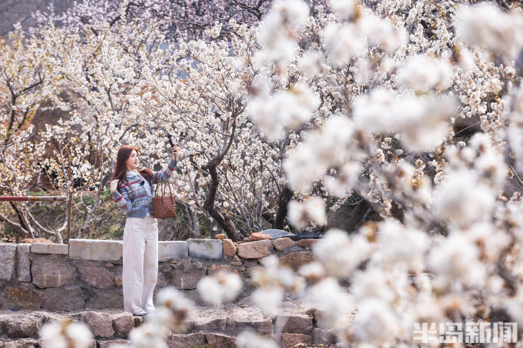 三百载红杏传承,三千亩花海引客。3月28日,青岛市城阳区夏庄街道少山社区,许多市民和游客来此赏花观景,品尝地道的农家宴,感受山野春日的浪漫氛围。