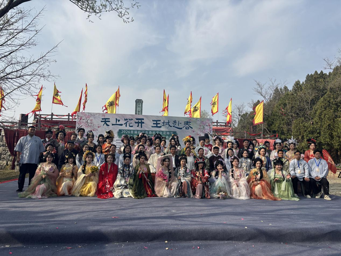 3月28日,“天上花开·王城赴春”2026首届临沂市春秋文化花神节暨天上王城云裳花谷新品发布会在天上王城景区开启,许多游客身穿汉服行走花间,共会这场春日雅集。