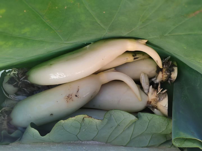 马踏湖白莲藕:湖区特产,洁白如玉、鲜嫩甜脆,生吃清爽回甘,熟食粉糯绵软,是餐桌上的时令佳品。
