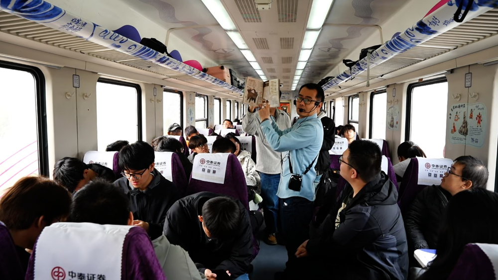 在列车上,学生们化身“文物主题讲解员”“文物保护普法员”,开展“现场版”专业讲解实践比赛,向乘客宣讲新修订的《山东省文物保护条例》及文物保护背后的历史故事,省旅行社协会还为优秀学生颁发“最佳讲解创意”证书,激励学生们继续主动传播齐鲁文化。