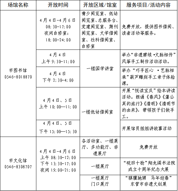东营市公共文化场馆2026年清明假期期间文化活动汇总表