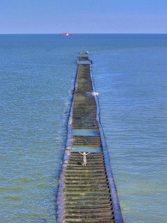 看海的浪漫不得不说孤东海堤。海堤气势恢宏,如长龙卧波,镇海锁浪。身在其中,仿佛时间都变得缓慢。
