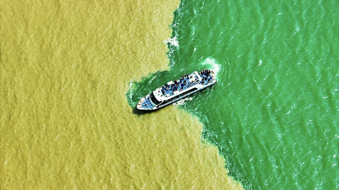 黄河口生态旅游区的魅力,又岂止这些呢?最是震撼河海交汇处,黄蓝两色泾渭分明,奔涌相拥,壮阔天成。偶有群鸟振翅齐飞,掠过蓝天与芦苇荡,鸣声清亮,为这片湿地添了几分生机与野趣。