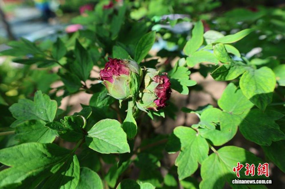 4月10日,位于山东菏泽鲁西新区的菏泽牡丹园,并蒂牡丹含苞待放。