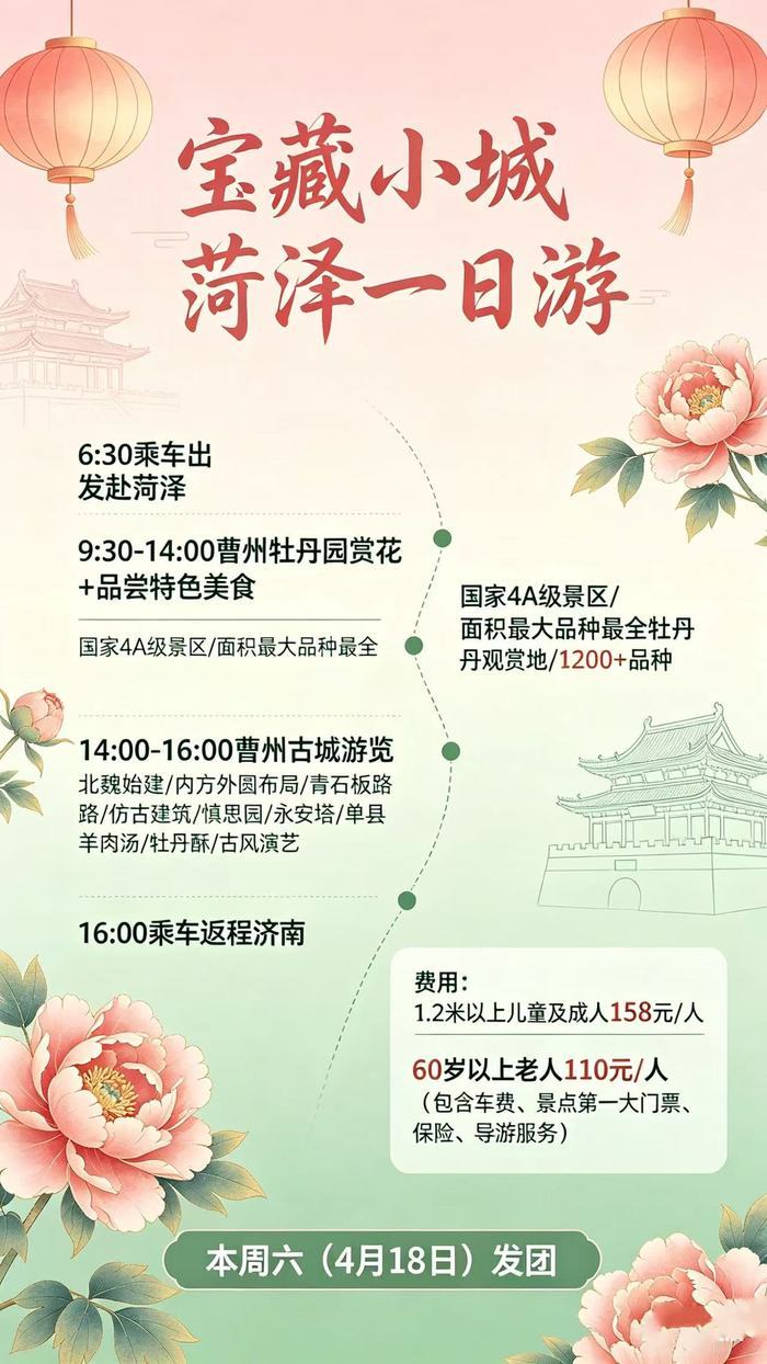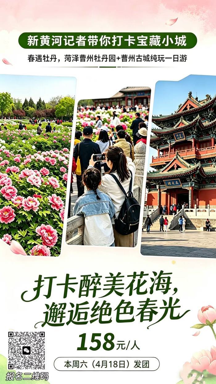 本周六(4月18日),新黄河记者将带您解锁这座宝藏小城,与您一起走进曹州牡丹园共赴一场牡丹盛宴,漫步曹州古城触摸千年文脉,不负春日好时光。