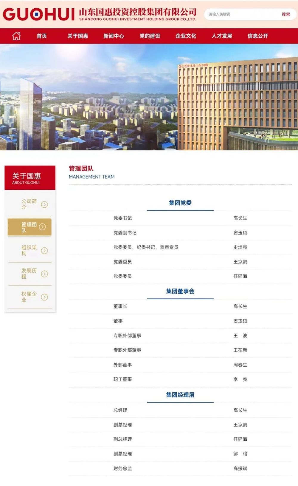 “山东国惠投资控股集团有限公司”官网已于近日更新,高长生任集团党委书记、董事长,同时仍兼总经理。