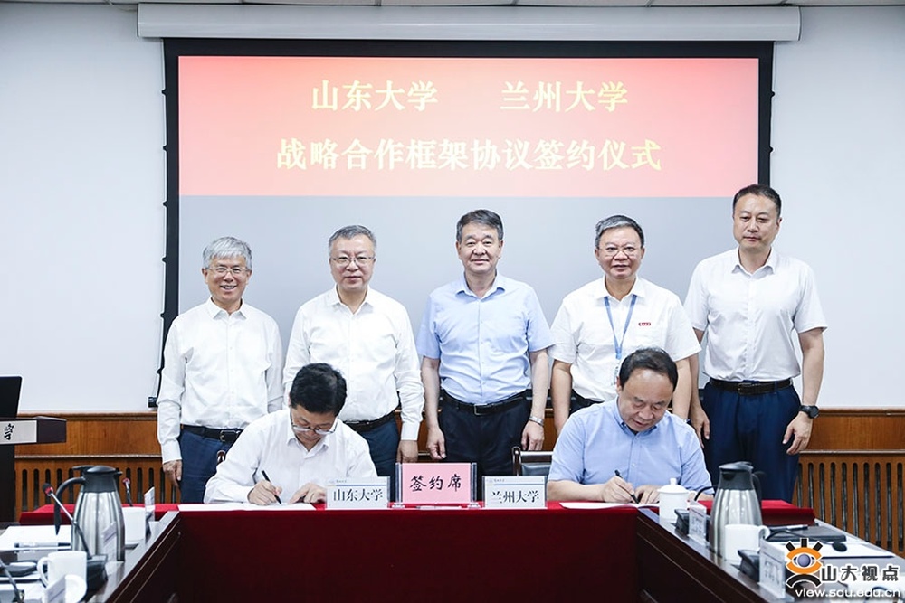 山东大学代表团与兰州大学举行了座谈,双方签署战略合作框架协议,将本着“服务战略、优势互补、协同创新、共建共享”的目标愿景建立校际战略合作关系,在学科建设、人才培养、教师干部队伍建设、科学研究和对口支援等方面开展合作交流。