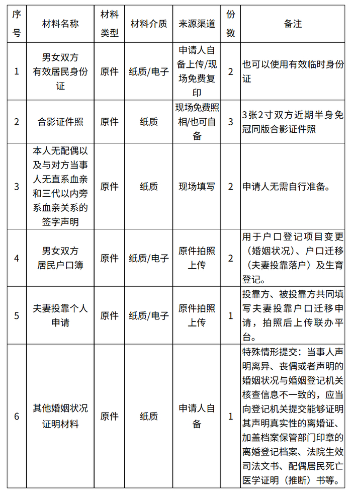 2.户口登记项目变更(婚姻状况)、户口迁移(夫妻投靠落户)事项办结后,当事人可以向户籍地公安派出所申请以邮寄方式领取居民户口簿。