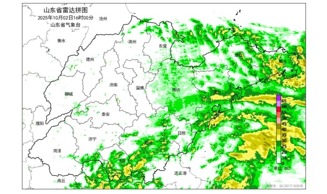 目前,降水回波主要位于枣庄、临沂、青岛、烟台和威海。