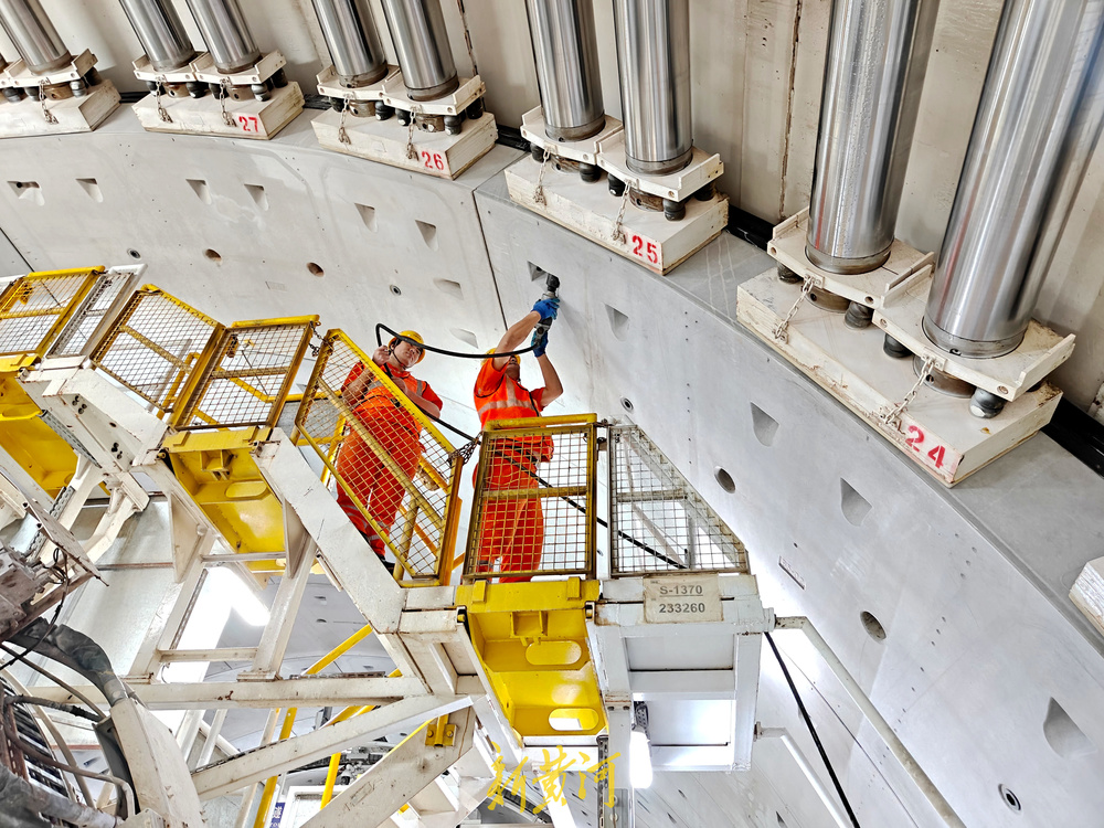 自进场以来,中铁十四局建设团队会同国内外专家研究论证,结合大盾构施工经验和技术积累,对盾构设备的刀盘形式、刀具类型、耐压耐磨能力、后配套等进行针对性设计,创新应用多项前沿技术,“量身”打造高配版穿海“利器”。