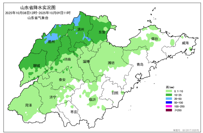 “双节”过后,雨仍未停。据山东省气象台统计,10月8日12时至9日11时,全省共有13市出现降水,平均降水量5.4毫米,折合水量约8.5亿方米。