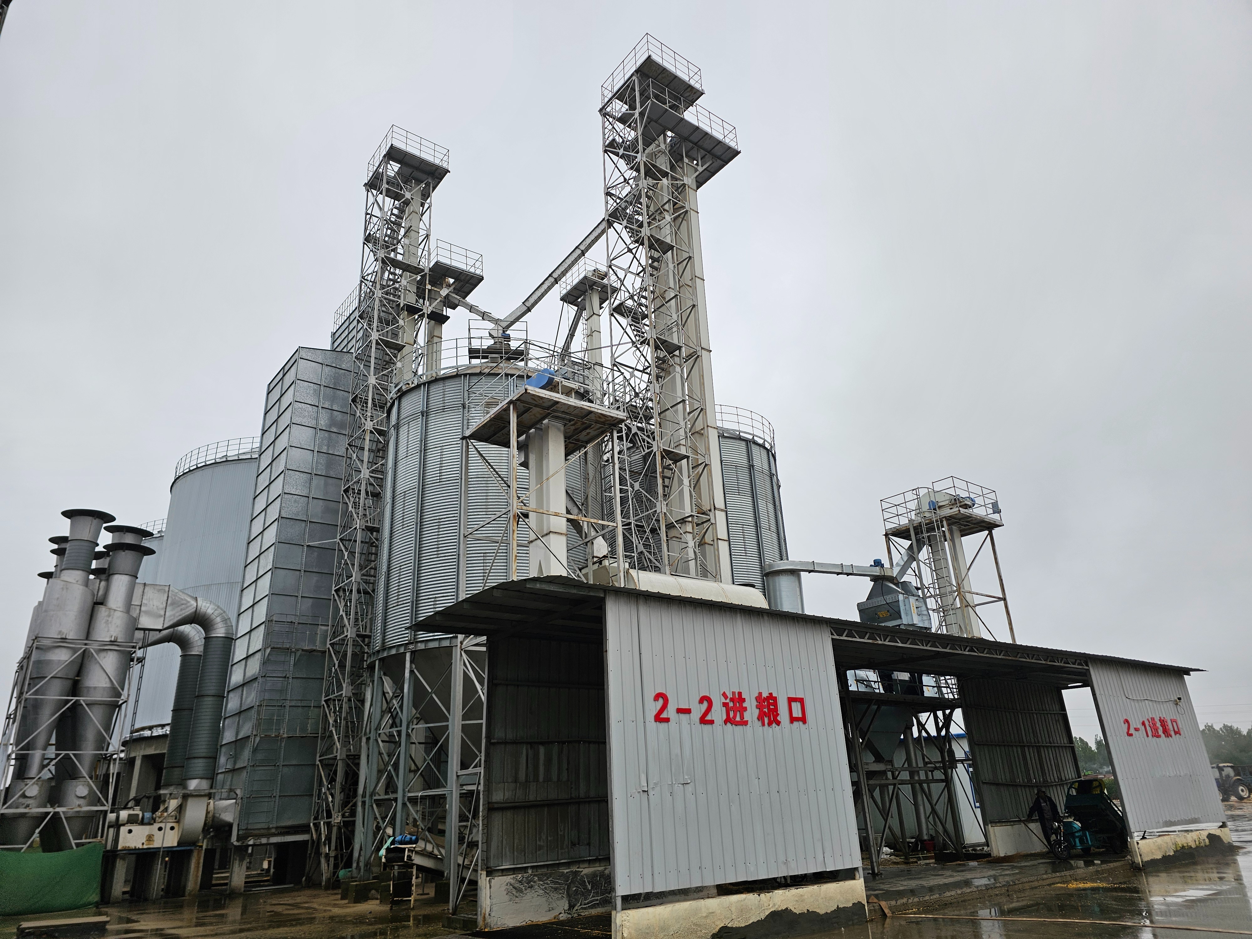 鲁望公司有13台循环式烘干机和2座连续式烘干塔。“循环式就是烘完这一批,排空后再进行下一批作业,日烘干能力约400吨;连续式的特点是这边源源不断地进,那边源源不断地出,日烘干能力为600吨。目前我们日烘干能力约为2000亩地的产量。”何石宝说。