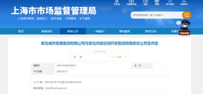 青岛城建领域的“双子星”完成合璧。近日,上海市市场监管局网站正式公布的《青岛城市发展集团有限公司与青岛市政空间开发集团有限责任公司合并案》提到,青岛城发与青岛市政拟进行新设合并,设立青岛市政开发建设集团有限公司(以下简称“青岛市政开发集团”)。交易后,新成立的青岛市政开发集团将为青岛市国资委下属企业,该消息一时间引发业内关注。