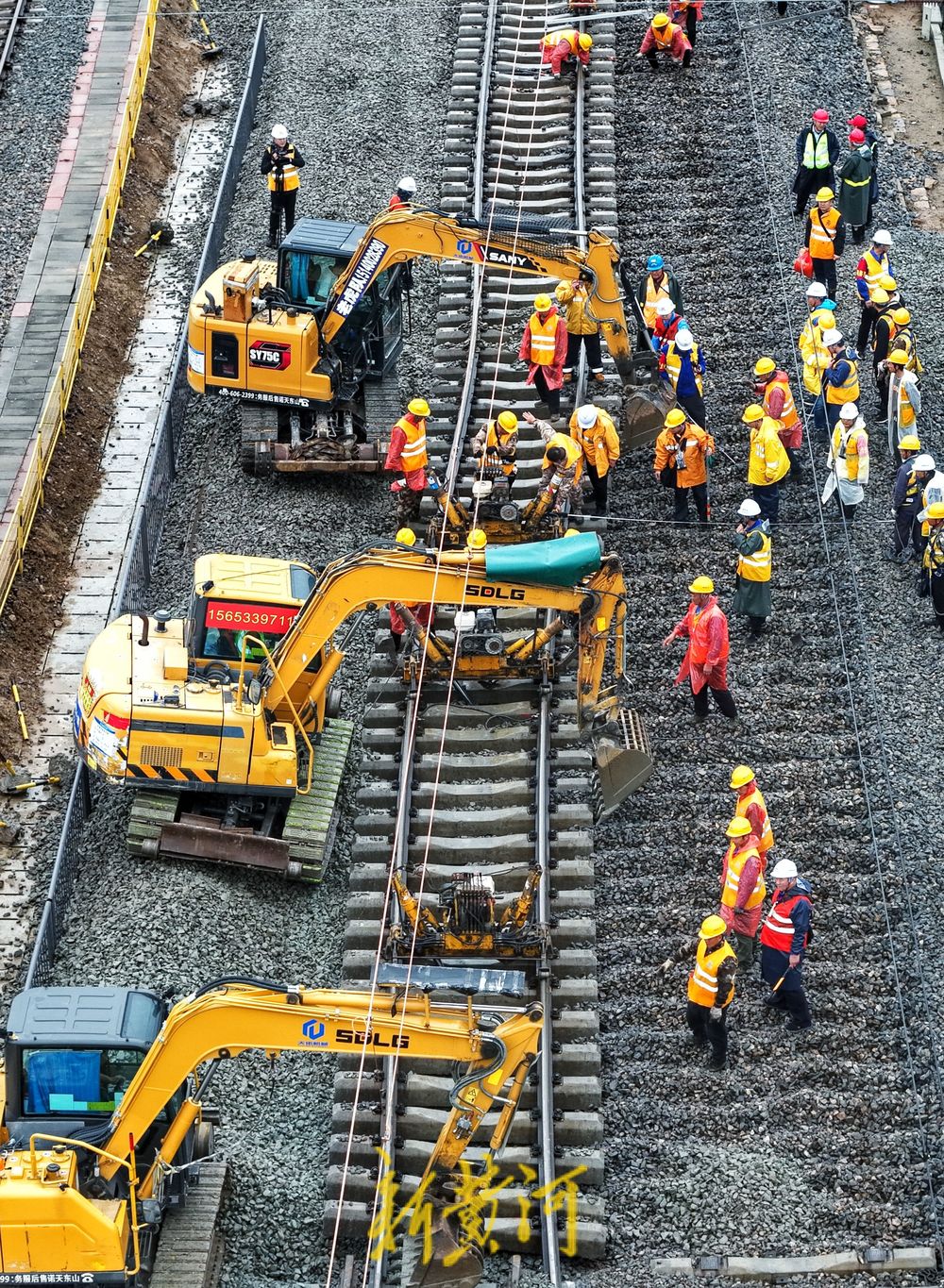 本次封锁施工历时270分钟,多个专业工种协同奋战,在京沪铁路白家店至兖州区间范围内,进行了3处关键点的拨接作业,完成了3.1km新建铁路线路的顺利开通。施工作业还同步完成了相关股道及道岔、线路的拆除,配套信号、接触网等设备设施的改造。