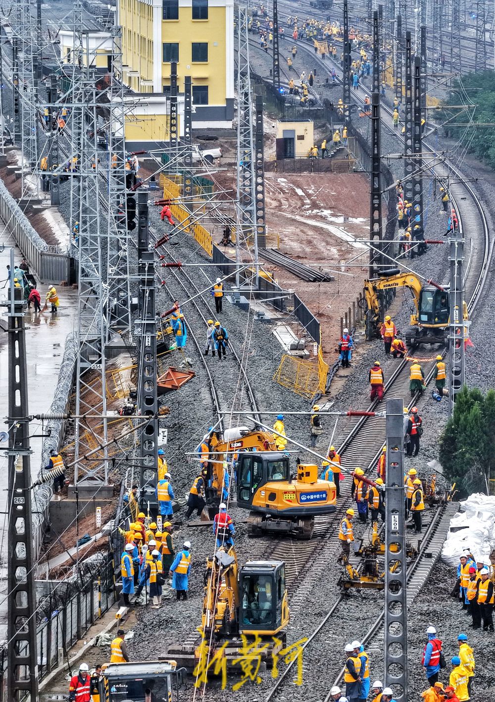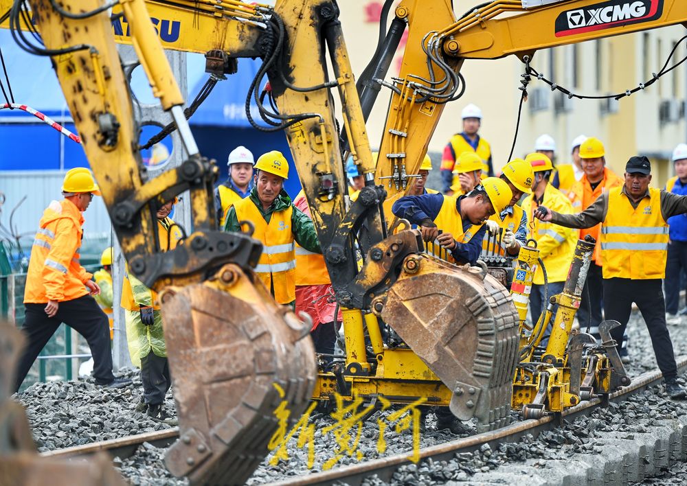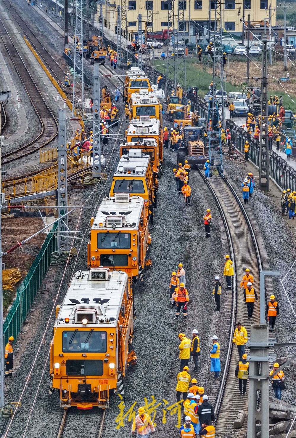 此次施工面对“封锁作业时间紧、工程量大、安全风险高、专业协调项点多”等难点和挑战,中铁十局兖州站改项目部采取了“管理前置、计划先行、点前模拟”原则,利用BIM等数字化技术进行了实战推演,投入作业人员近1000人,配备挖掘机18台,现场利用无人机航拍技术进行全方位直播,实现统一调度,确保多工序平行流水作业。