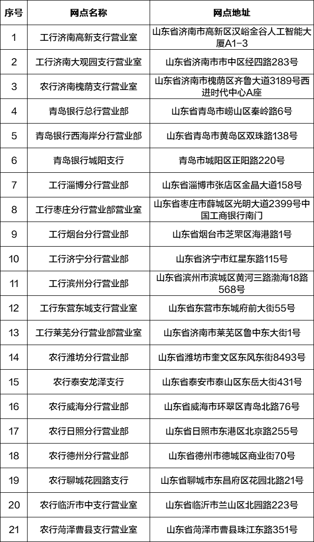 山东省已故人员银行卡账户线索查询部分受理网点清单(全部受理网点信息可在云闪付查询)