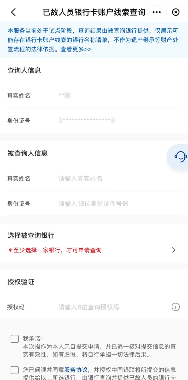 为解决“已故亲属银行卡账户线索查询难”实际问题,便利群众查询已故人员银行卡账户信息,在中国人民银行山东省分行指导下,中国银联山东分公司于2025年10月13日在全省试点开展“已故人员银行卡账户线索查询”服务。