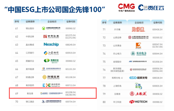 新黄河记者从山东港口集团了解到,10月24日—26日,ESG中国·创新年会暨首届ESG国际博览会在北京举办,主论坛活动发布了《2025年度ESG行动报告》及“中国ESG上市公司国企先锋100”等榜单。山东港口旗下青岛港国际股份有限公司成功入围“中国ESG上市公司国企先锋100”榜单。