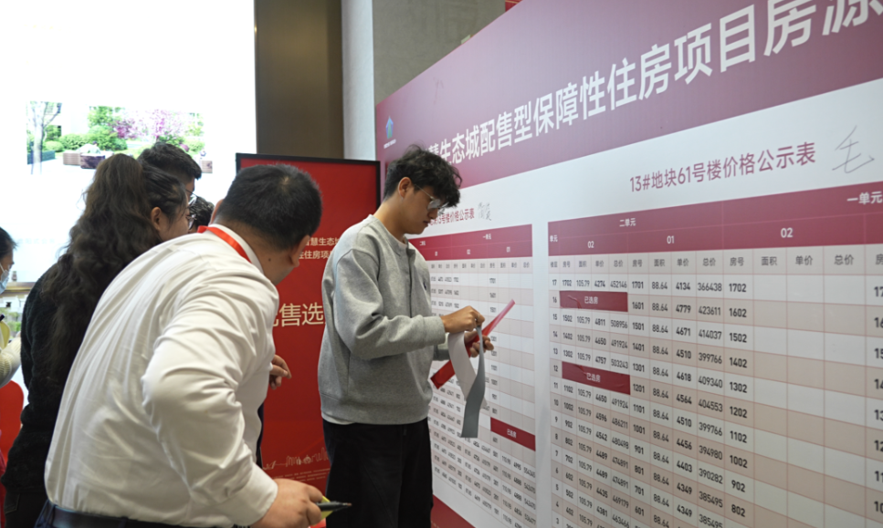 选房期间,青岛组建专项工作组,现场提供政策咨询、项目介绍等“一站式”服务,流程规范有序、高效便民。选房工作严格遵循公平、公正、公开原则,申请家庭在青岛市市中公证处的全程监督下有序选房,现场气氛热烈。项目涵盖和达·智慧生态城9#地块(和达·智慧生态城玥园)以及13#地块(和达·智慧生态城瑜园),户型均为套三设计,面积在88至111平方米之间,配售基准价分别为4946元/平方米(装修)和4402元/平方米(毛坯),优惠的价格切实减轻了居民购房负担,受到了群众的广泛欢迎。