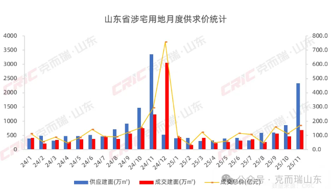 整体看,11月山东土地市场成交规模虽环比上涨近五成,但以地方国企拿地为主流,仅有青特置业一家本土头部房企有拿地动作。