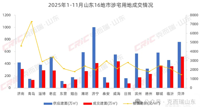 统计显示,11月,山东共出让涉宅用地139宗,建筑面积约687万m²,成交总价约171亿元。其中,枣庄成交15宗住宅用地,规划建筑面积约136万㎡,全省领先。其中,枣庄高新投资集团和薛城民生集团两家地方国企大手笔拿地,双双跻身山东1—11月房企拿地金额榜TOP10。