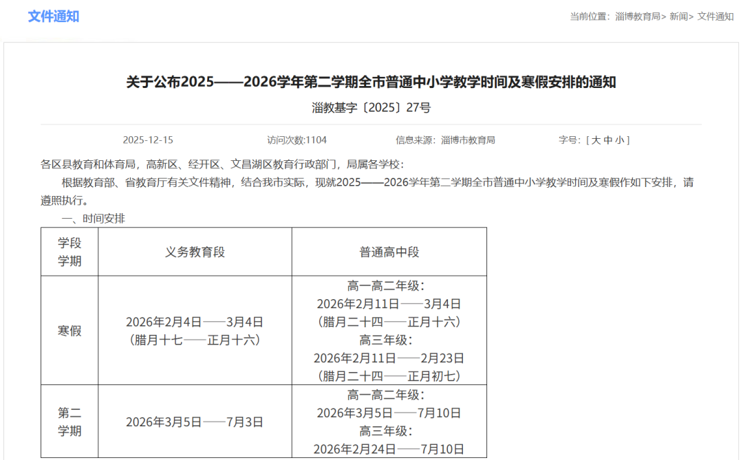 近日,山东多地公布中小学2025—2026学年第一学期寒假放假时间。