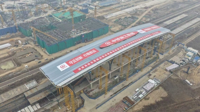 1月4日,在中铁建工集团承建的津潍高铁东营南站项目现场,随着顶推系统同步驱动,最后一块跨度195米、重达1400吨的巨型“钢铁翅膀”——站房钢屋盖单元平稳精准滑移到位。这标志着东营南站成功跨越下方繁忙的德大铁路,取得突破性进展,为后续工程全面推进奠定坚实基础。