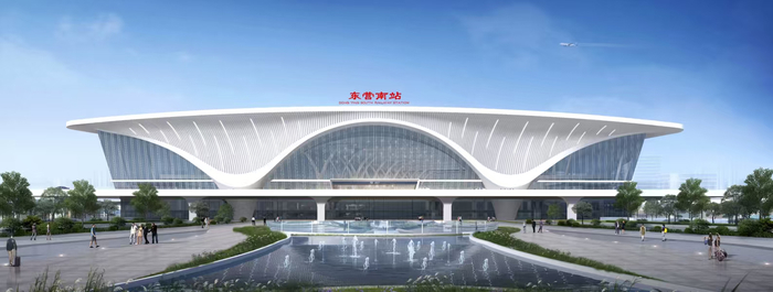 东营南站项目位于山东省东营市,是津潍高铁正线的重要车站。站房总建筑面积达7.4万平方米,站场规模为7台20线,采用“线侧+线上式”高架候车设计,最高可聚集2200人。该站将与机场、汽车总站、既有东营火车站等共同构建东营市现代化综合交通枢纽网络。