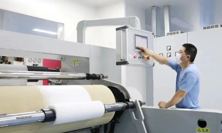 走进光焱新材料的生产车间,机器轰鸣中,成品区的“呼吸纸”洁白如棉、韧性十足。目前,企业第一条生产线已在去年8月投产,第二条生产线预计今年10月完工,按照规划,到2026年底将建成5条生产线,年产能达7000万平方米,产值有望突破3亿元,彻底改变国内市场依赖进口的格局。