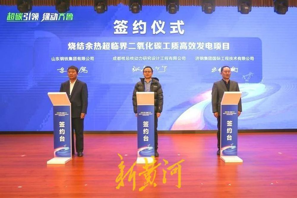 现场,成都核总核动力研究设计工程有限公司、济钢集团国际工程技术有限公司与山东钢铁集团公司、山东恒信集团有限公司签约,将分别在烧结余热超临界二氧化碳工质高效发电项目、燃气发电耦合超临界二氧化碳工质高效发电项目开展合作。