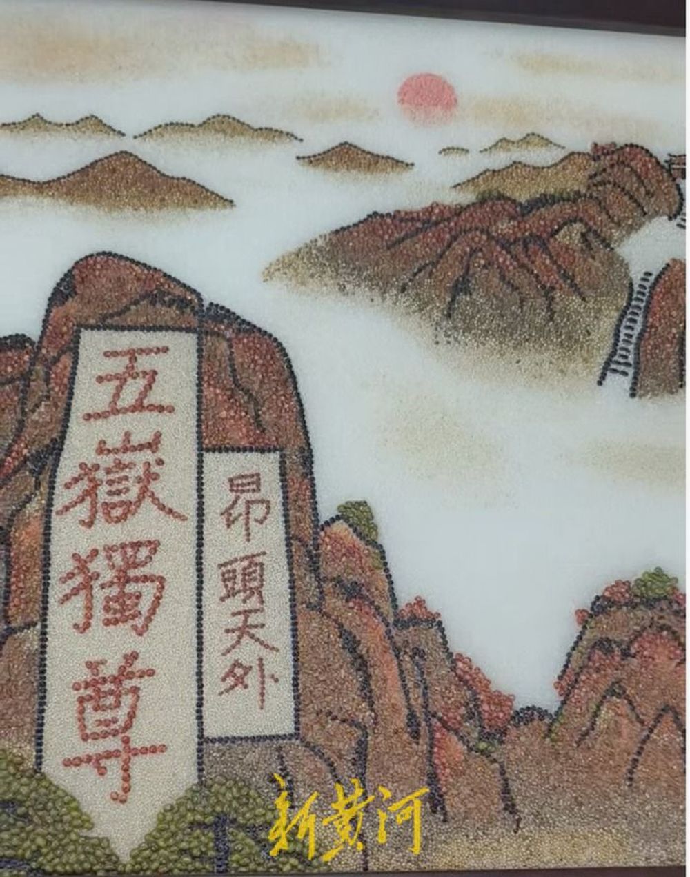 “这个粮画里五岳独尊,用的是俺们东明的五种杂粮。”走进大集,便看到东明非遗粮画,一粒粒红豆、绿豆、小米在木板上“生长”为壮丽画卷。非遗手造展区内,粮画、蓝印花布、押花艺术等十余个摊位前围满了好奇的群众。粮画展台尤为热闹,孩子们在指导下尝试拼贴简单的图案,感受“五谷作画”的奇妙。