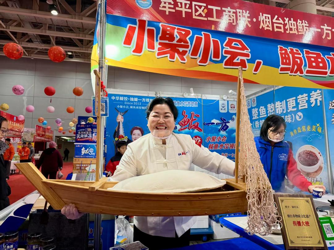 “过年吃鲅鱼饺子,图个年年有余!”2月4日上午,烟台国际博览中心展厅内,烟台独鲅一方食品有限公司展位前人头攒动,煮锅咕嘟作响,溢出带着“海味”的香气。