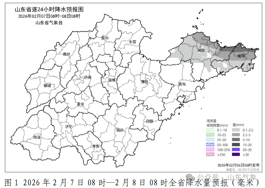 7日烟台和威海有小到中雪局部大雪