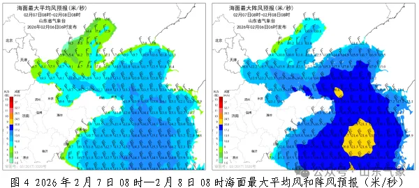 7日白天到夜间,烟台和威海天气阴有小到中雪局部大雪转多云,其他地区天气晴到少云。半岛地区北风5~6级阵风7~8级减弱到3~4级,滨州、东营、潍坊和日照北风4~5级阵风6~7级减弱到3~4级,其他地区北风转南风3~4级。夜间最低气温:鲁中山区和半岛内陆地区-10℃左右,菏泽和济宁-5℃左右,其他地区-7℃左右。最高气温:菏泽和济宁4℃左右,鲁中山区和半岛地区-3℃左右,其他地区1℃左右。