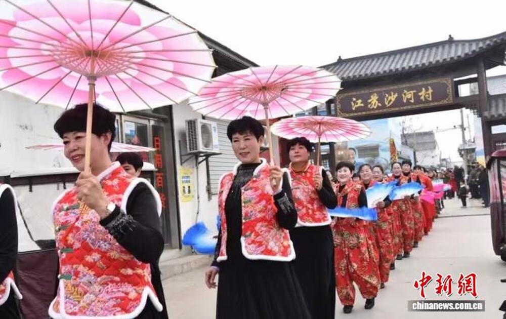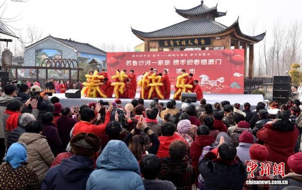 2月5日,江苏沛县龙固镇沙河村的“苏鲁百姓大舞台”张灯结彩、人声鼎沸。龙固镇沙河村与山东鱼台老砦镇沙河村的村民欢聚一堂,共同迎来“我们的节日·春节”跨省文艺联欢,这是两座沙河村连续第三年携手举办的新春演出。