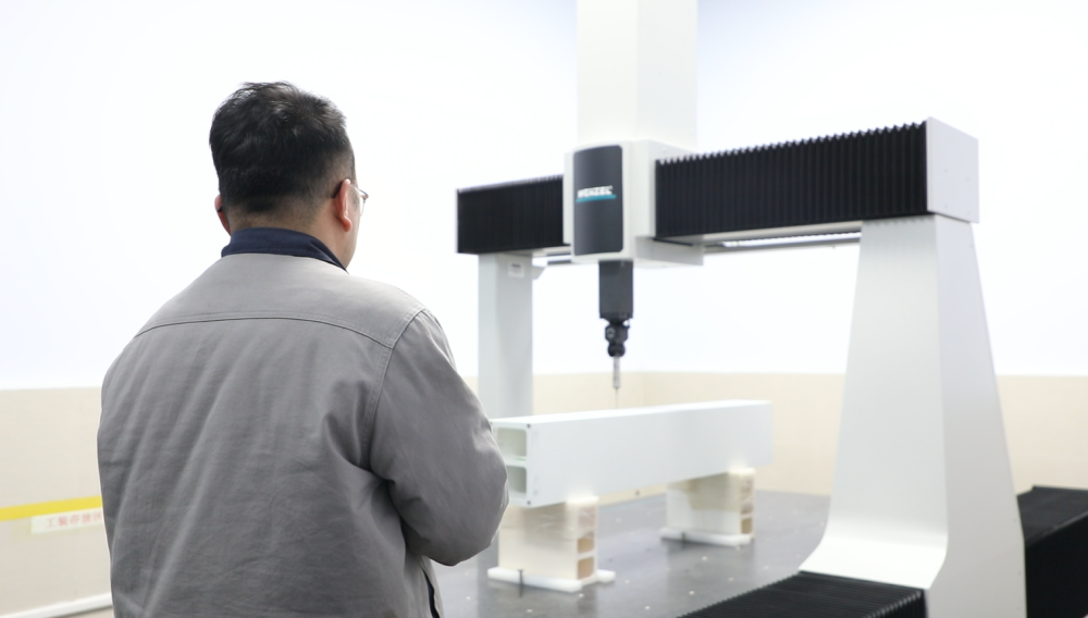 工作人员对陶瓷导轨进行纳米级精度测试