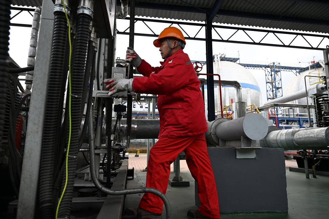 在两个篮球场大小的设备区内,159块压力表的数据需逐一核对。朱海刚在低温增压泵前驻足细听:“声音平稳,轴承正常。”这样的巡检每两小时一次,24小时不间断,三班轮值。“我们没有工作日和节假日之分,上下游不停产,我们就不能停。”