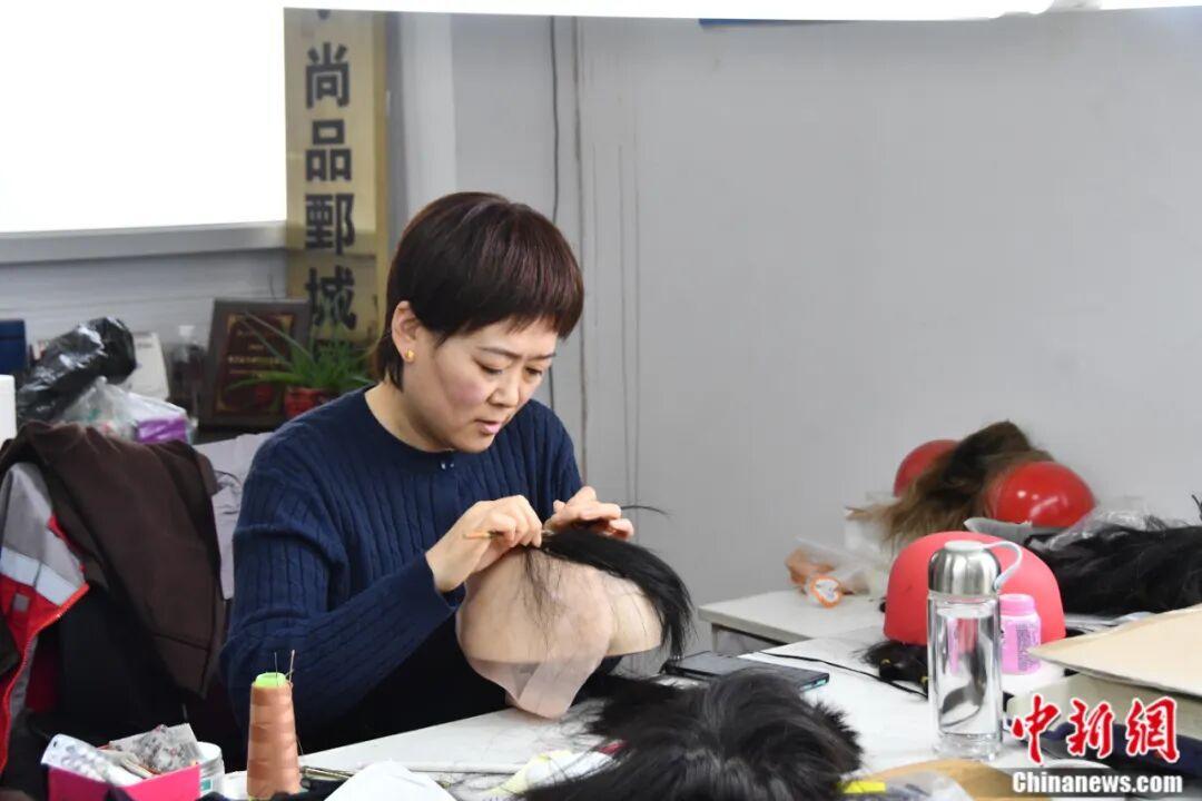 在鄄城县泰达工艺品有限公司的生产车间,工人们正专注地进行钩织作业:细如牛毛的针具穿梭在网底间,每一根发丝的长度、角度都要严丝合缝,稍有偏差就会影响佩戴效果。“中高端假发要求更高,得根据客户头型、发色精准定制,纯手工钩织往往需要数周”,该公司负责人王伟介绍。