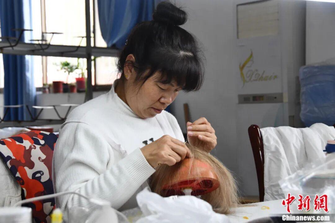 一顶假发的诞生,藏着外人难懂的“功夫”。分拣、消毒、拉发、钩织、修剪、造型……看似简单的流程,实则要历经上百道工序,每一步都考验着工人的耐心与精准。