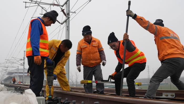 2月26日,正月初十,雄商高铁山东段建设现场已是一片繁忙,在雄商高铁聊城至菏泽区段的施工现场,国铁济南局静态验收的专业技术团队已全员到岗,全力推进轨道精调、钢轨探伤等开通前的最后冲刺工作。